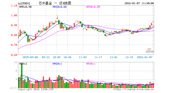 1月7日,截止午间收盘,芯片ETF广发(159801)涨1.96%,报0.935元,成交额1.89亿元。芯片ETF广发(159801)重仓股方面,寒武纪截止午盘跌0.80%,中芯国际跌1.23%,海光信息跌1.60%,北方华创涨6.32%,澜起科技涨1.82%,兆易创新涨3.84%,中微公司涨7.98%,豪威集团跌0.31%,长电科技涨1.93%。