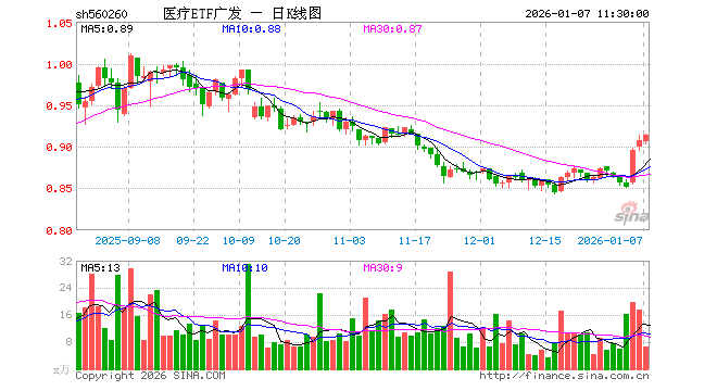 1月7日,截止午间收盘,医疗ETF广发(560260)涨0.77%,报0.914元,成交额590.96万元。医疗ETF广发(560260)重仓股方面,药明康德截止午盘涨2.24%,迈瑞医疗跌0.96%,联影医疗涨0.72%,爱尔眼科跌0.88%,康龙化成涨2.29%,泰格医药涨1.68%,爱美客跌0.59%,惠泰医疗跌0.47%,新产业涨0.64%,鱼跃医疗跌1.21%。