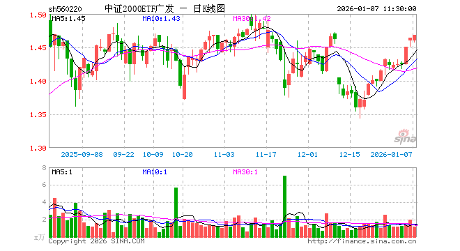 1月7日,截止午间收盘,中证2000ETF广发(560220)涨0.27%,报1.468元,成交额167.10万元。中证2000ETF广发(560220)重仓股方面,仕佳光子截止午盘涨2.57%,振华股份跌3.25%,和林微纳涨16.39%,诺诚健华涨3.25%,中际联合涨0.66%,永鼎股份涨5.39%,广大特材涨2.68%,灿勤科技涨3.55%,西典新能涨1.98%,吉宏股份涨1.62%。