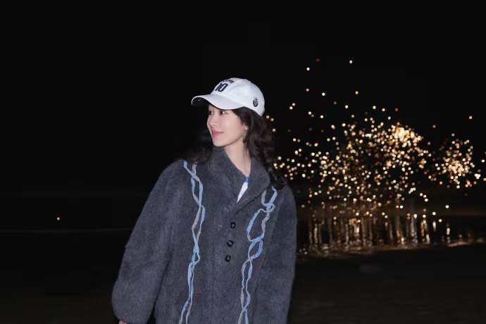 杨紫海边烟花碎片照杨紫工作室晒照庆祝国色芳华一周年杨紫海边烟花碎片照