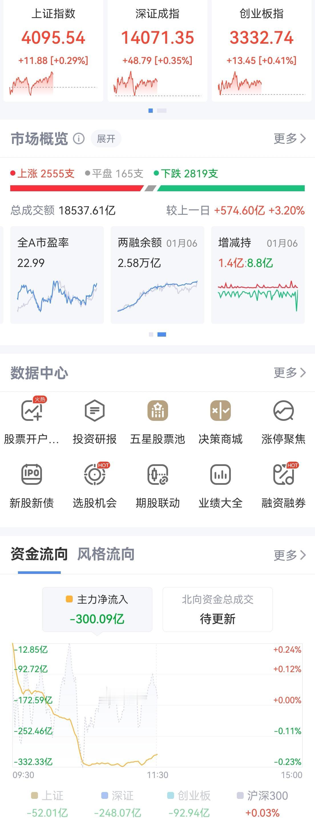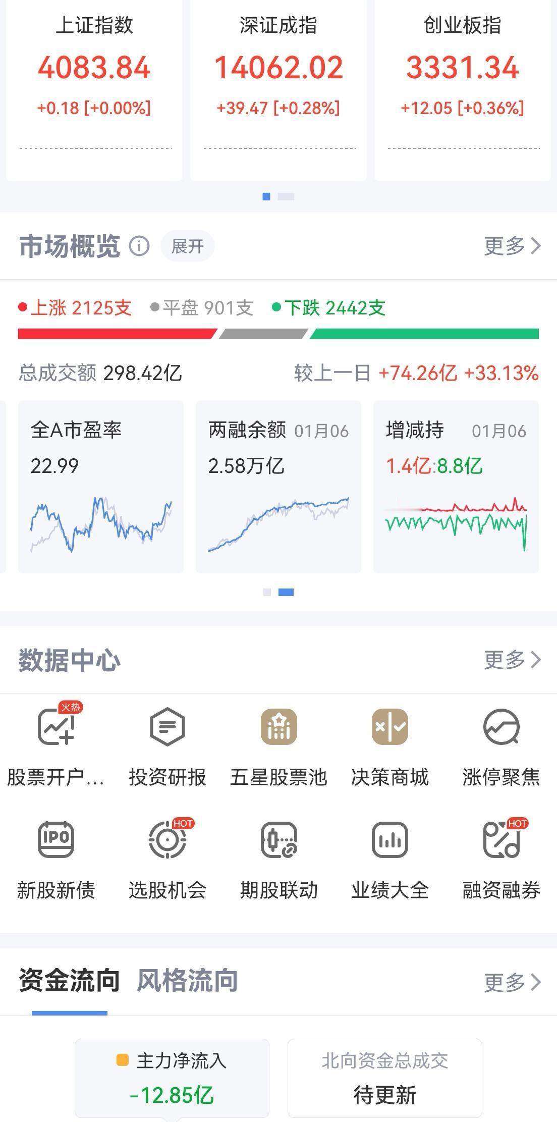 午盘印象(1月7日) 同创新高 回落震荡 外围:美股收涨 英伟达低迷 隐忧凸显 内股:科技分化 CPO高开拉升 航天回落 一、三大股指微幅开红: 指数弱红 个股开盘涨平跌比率39%:16%:45%。 个股弱开(-6个百分点),不敌上个交易日 二、指数上扬又震荡: 科技分化 CPO强势 指数分化,上证红盘震荡 深小创冲高回落 三、涨跌幅榜: 科技分化,红利调整,非银分化 跌幅前列:化石能源、银行、家电 涨幅前列:半导体、金属类、医药、自贸 四、开盘和午盘: 开盘:沪+0.00%、深+0.28%、创+0.36%。 午盘:沪+0.29%、深+0.35%、创+0.41%。 个股盘中震荡, 五、午盘个股上涨46%,涨跌差距(-5个百分点);与开盘相比,下跌个股继续增加。 资金净流入-300亿,资金出逃,大幅净流出 六、沪深两市成交量午盘18,351亿,上个交易日17,813亿,同比量能放大超500亿,放量微红,滞涨稍许。 七、三大股指同创多年新高 CPO强势回归,量能继续扩张 同创新高之后资金谨慎,冲高回落又震荡 午后两种情形: 1、平行震荡:继续时间换空间,缓步消化浮筹,震荡攀升红包行情中。 2、震荡回落:稍许滞涨谨防跳水,时空加速统一,上行格局不改。 (图片源自网络侵权告知删除)