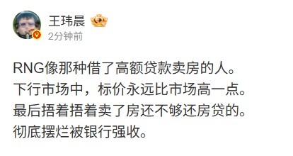 媒体人:RNG像那种借了高额贷款卖房的人 最后彻底摆烂被银行强收