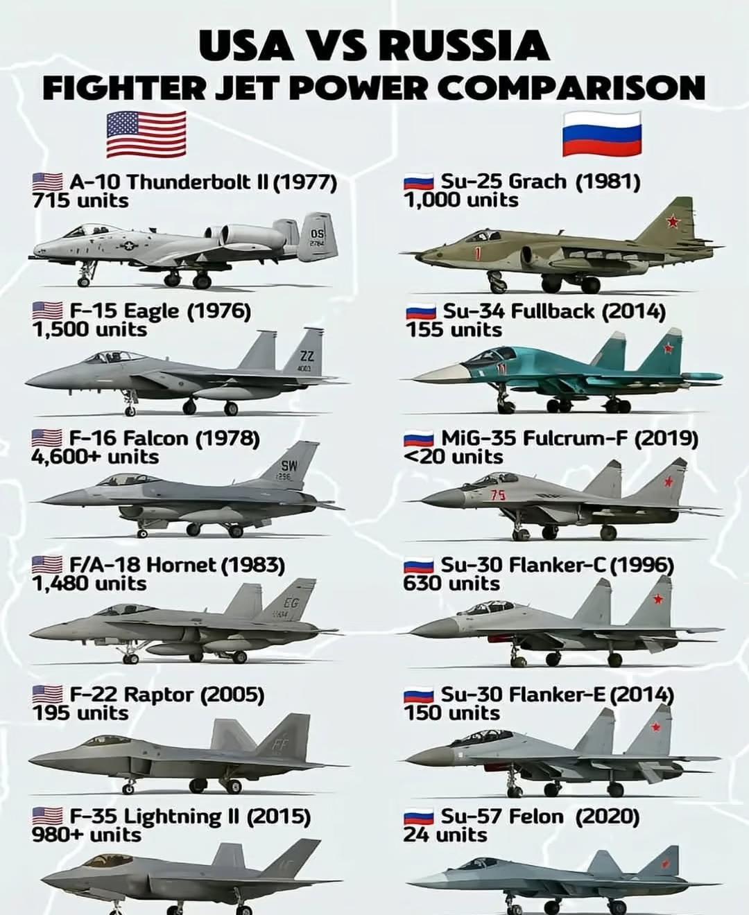 美国VS俄罗斯战斗机 美国对俄罗斯:战斗机PK 哪家更强? 军事 武器装备