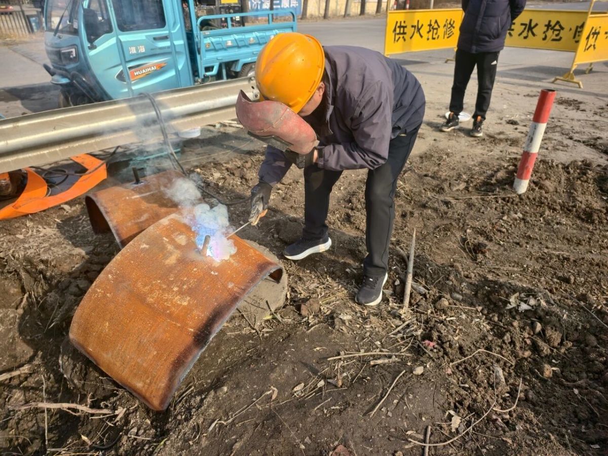 为最大限度降低对市民用水的影响,抢修工作采取“双线并行”策略高效推进:一方面紧急协调相关部门开展开挖作业,维修组同步备齐抢修材料,实现施工各环节无缝衔接、压茬推进;另一方面统筹水源地管理,科学调配水源井布局,优化供水调度方案,确保抢修期间城市供水稳定有序。抢修现场,工作人员分工明确、协同作战,开挖、修补、密封等工序有条不紊,大家争分夺秒、严谨操作,以专业技术和硬核执行力攻克施工难题。