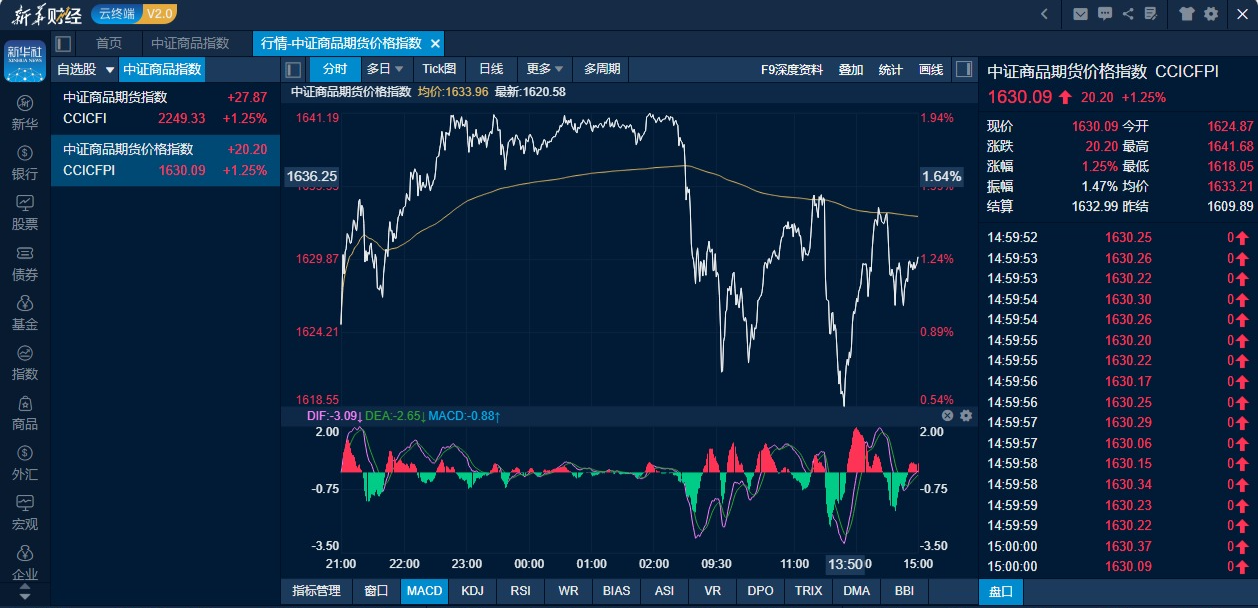 新华财经北京1月7日电(吴郑思、郭洲洋)在金属板块持续走强的带动下,国内商品期货市场多头情绪蔓延。1月7日,化工、钢铁等其他商品板块大面积开启补涨。截至收盘时,中证商品期货价格指数收报1630.09点,较前一交易日上涨20.20点,涨幅1.25%;中证商品期货指数收报2249.33点,较前一交易日上涨27.87点,涨幅1.25%。
