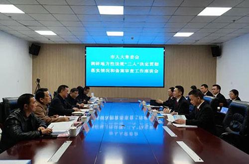 近日,达州市人大常委会副主任李大兵带队到达州市中级人民法院调研地方性法规“三入”决定贯彻落实情况和备案审查工作。达州市中级人民法院党组书记、院长魏庆锋陪同调研并主持调研座谈会。调研座谈会上,达州市中级人民法院党组书记、院长魏庆锋汇报了全市法院贯彻落实地方性法规“三入”决定和备案审查工作情况。调研组充分肯定了全市法院贯彻落实地方性法规“三入”决定的工作成效,认为法院政治站位高、工作措施多、落实效果好,要继续推动地方性法规在司法实践中得到准确适用,发挥好地方性法规补充国家立法、服务地方治理作用。调研组一行还前往达州市中级人民法院诉讼服务中心、阅读中心、执行指挥中心实地调研了法院诉讼服务、文化建设、切实解决执行难等工作。