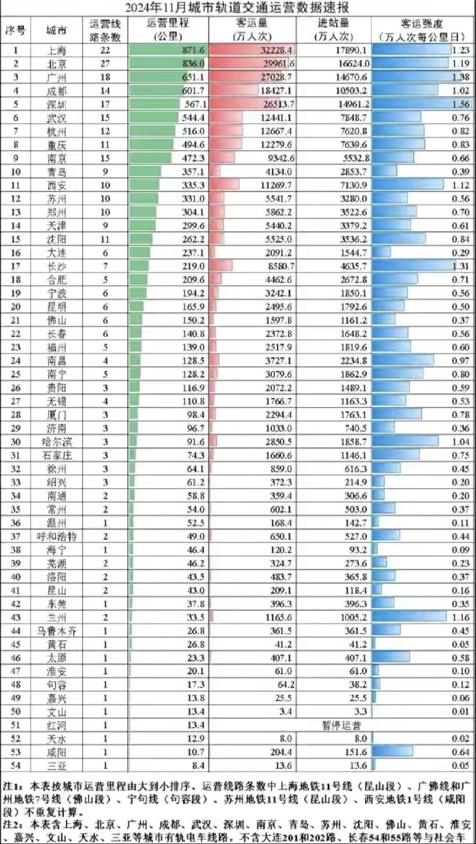 别再说深圳地铁最挤啦,真正的“挤王”其实是广州! 单看全网地铁客运密度,深圳以1.56万人次/公里·日排第一,广州1.38万紧随其后。但广州有不少地铁线修到了从化、增城、南沙这些郊区,客流量本来就小,拉低了整体数据。 要是看单条线路的客运密度,前三名全是广州的!4.36万、3.39万、3.18万的数字摆在那儿,前六名里广州占了五席。这才是广州城区地铁拥挤的真相,而且不管工作日还是周末,人都多得离谱,明显是城区地铁还不够用,得接着建! 再说说北京,表面上地铁密度不算低,还有不少线路在修。但实际情况是北京人口在下降,该覆盖的通勤需求基本都满足了,再建新线路也拉不来多少人。 不如把钱匀给广深,多修几条地铁缓解拥挤!大家说是不是这个理?地铁客流排行榜 地铁客运量 地铁客流量分析 深圳地铁 地铁挤人 地铁客流排名