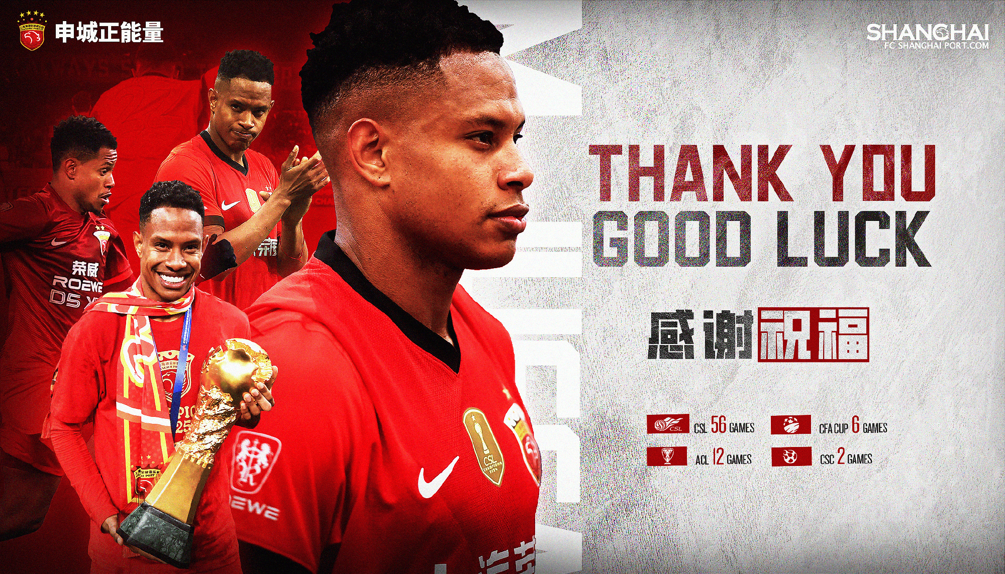 虎扑01月07日讯上海海港官方宣布,巴西外援茹萨离队,加盟成都蓉城。俱乐部对他两年来的贡献表示感谢,并祝他未来再创佳绩。