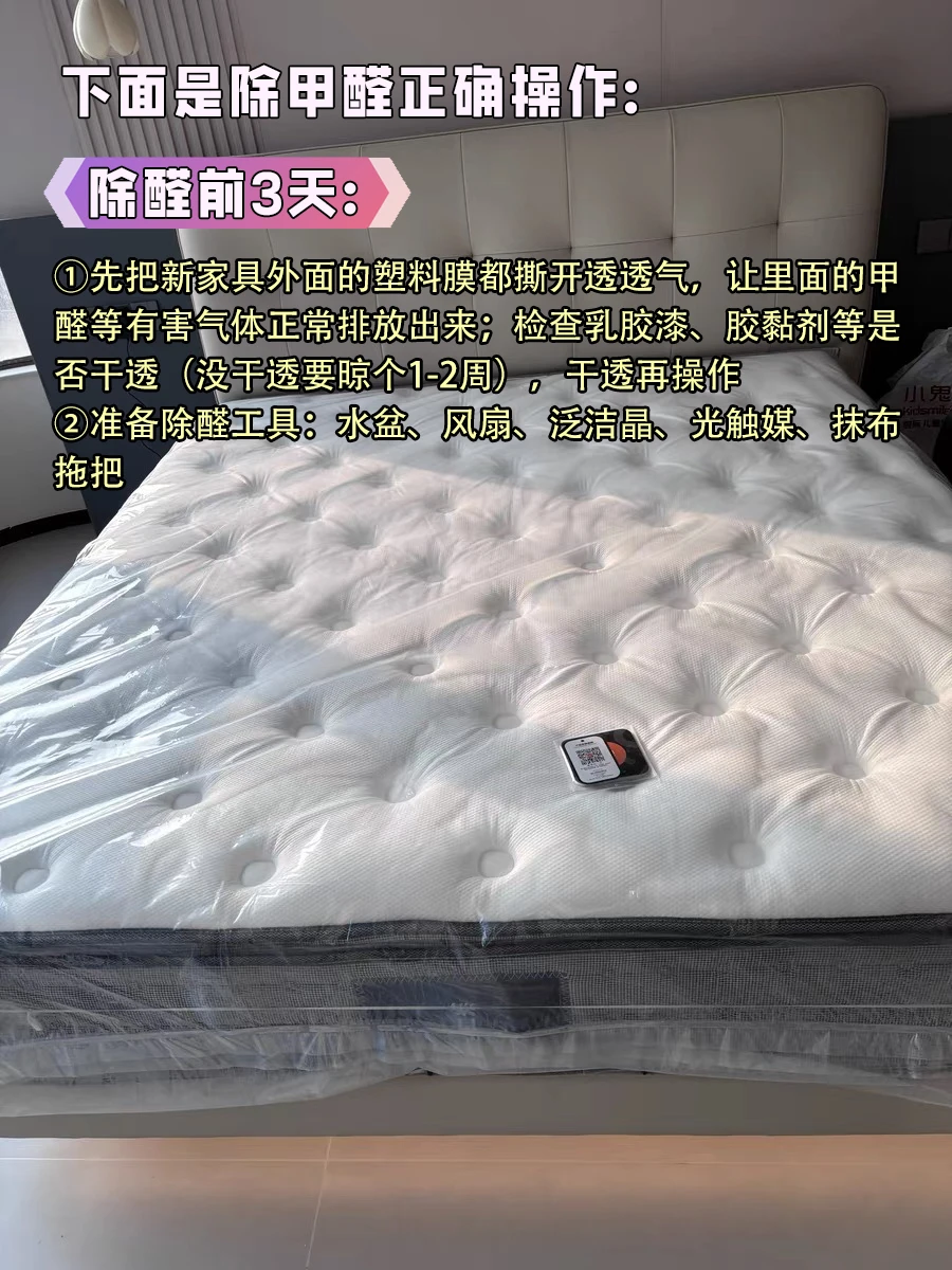 ①先把新家具外面的塑料膜都撕开透透气,让里面的甲醛等有害气体正常排放出来;检查乳胶漆、胶黏剂等是否干透(没干透要晾个1-2周),干透再操作