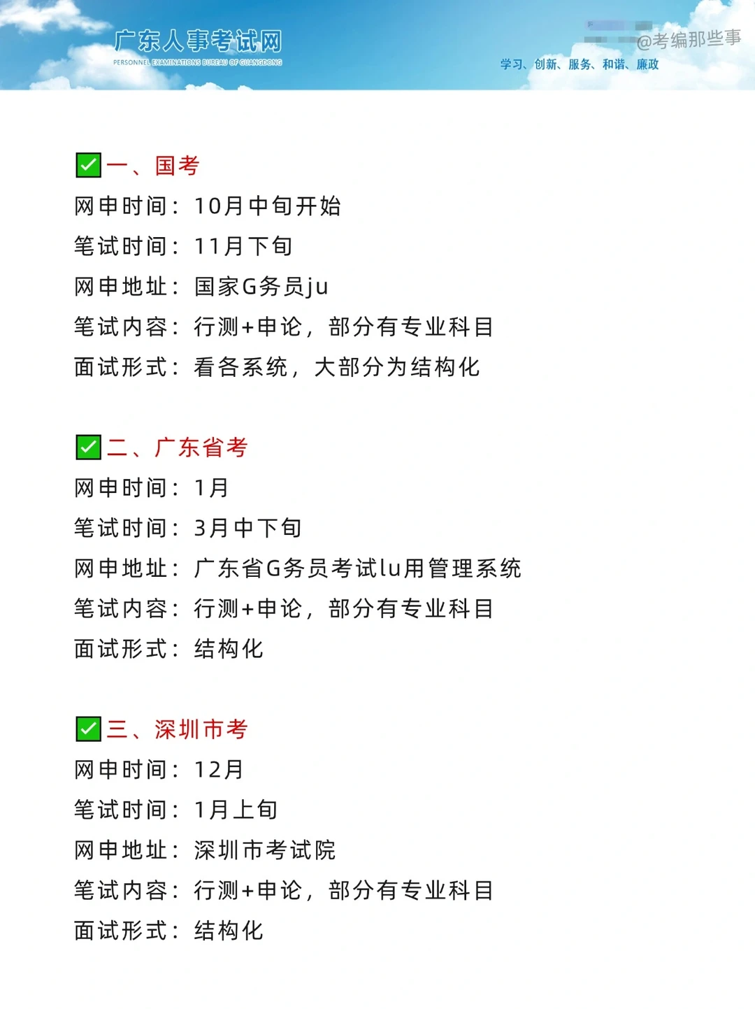 ✅深圳市考:之前是12月发布,1月上旬笔试