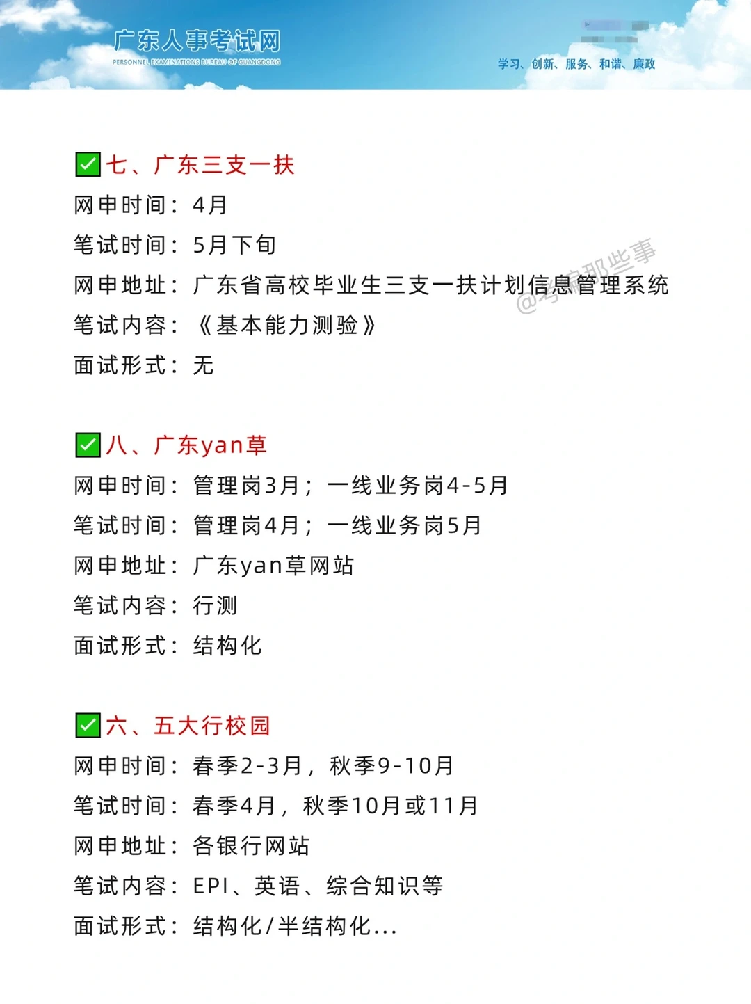 广东上岸机会^O^,不是只有考公,像考公没有岗位的小伙伴,建议可以考虑一下其他的考试,比如事业单位、国企、文职、农信社等