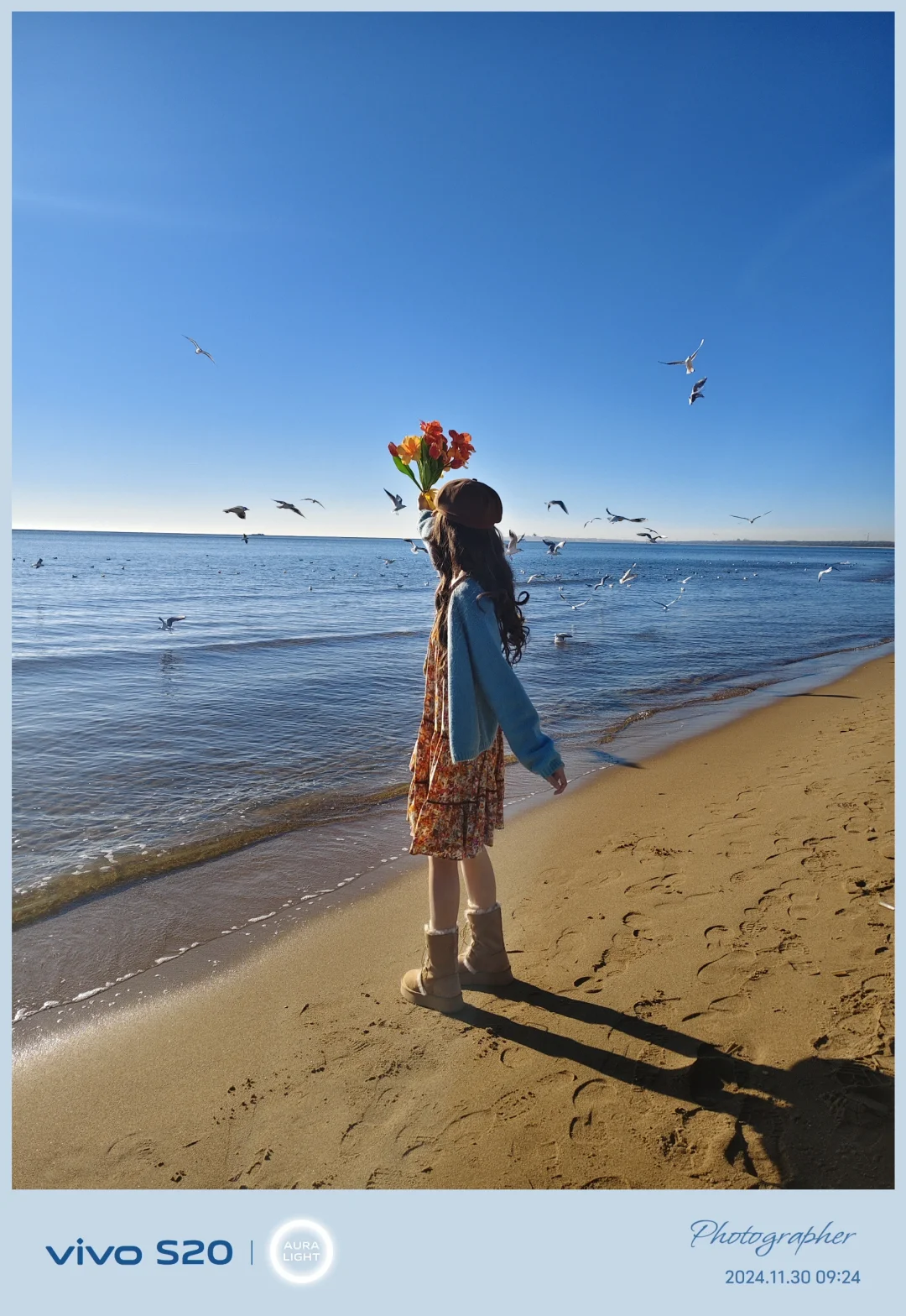 快来拥抱冬日里那片梦幻般的大海吧!让我们来一场随心所欲、即刻启程的旅行,与自由翱翔的海鸥共享快乐时光,让生活得到最纯粹的治愈。这次旅行手里拿着vivo S20手机,前后5000万柔光双主摄,这次海边拍照全靠它啦,简直就是摄影小能手的标配,更让我兴奋的是它90度超广角摄像头,自拍的时候能拍到更广阔的海面,简直就像把整个大海都装进我的手机里啦,无论拍摄动态的人物,还是飞翔的海鸥,它都能迅速准确的自动追焦~一拍得胶片相机直出满满的氛围感。另外它还能拍live照片,配上彩色的多巴胺动态相框仪式感拉满~