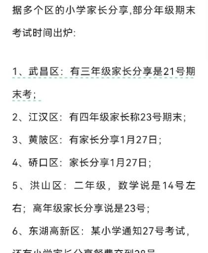 武汉小学生的期末是不是比27日早? 有没有学校老师已通知的? 看到很多消息都说1