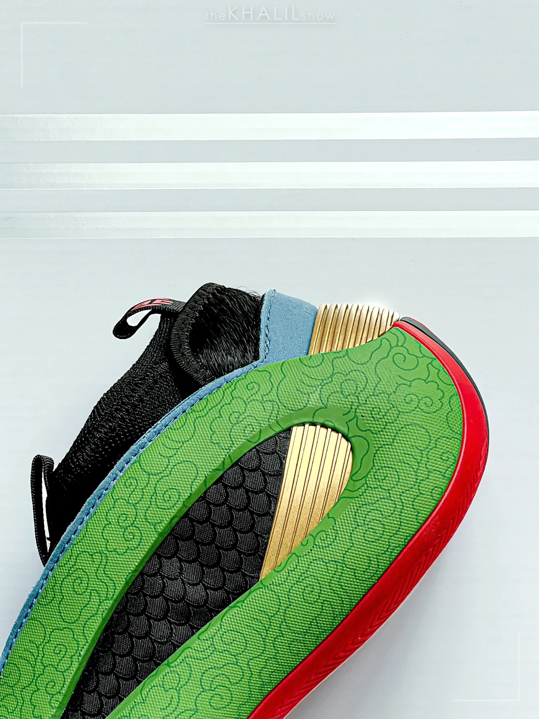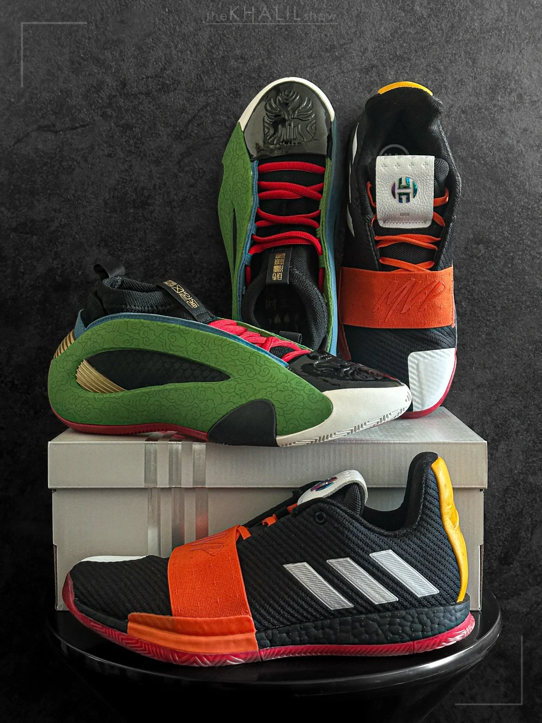 拿到实物的一刹那,居然与我几年前在adidas定制的哈登3不谋而合。都使用了多个不同配色组合,同时内外鞋身鸳鸯的设计,甚至鞋底颜色更是缘分十足哈哈🥳