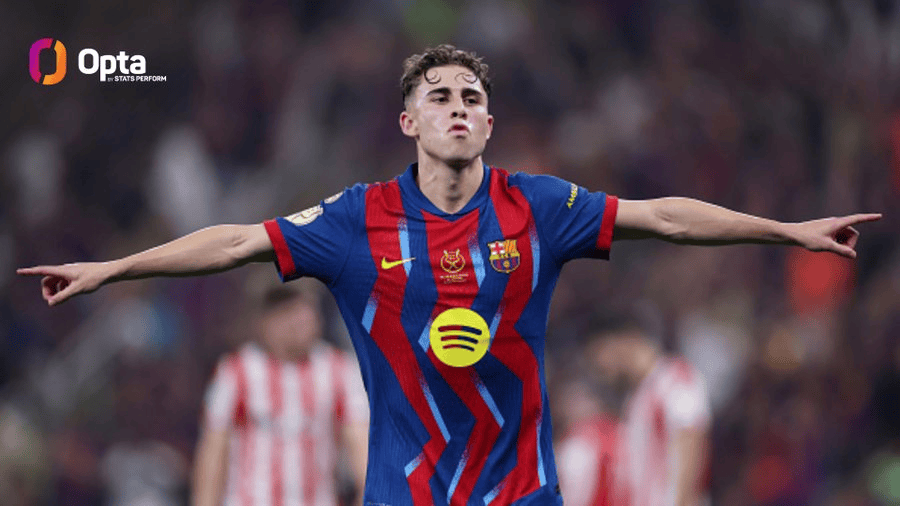 据统计,22岁241天的费尔明-洛佩斯在对阵毕尔巴鄂竞技的比赛中仅用45分钟便参与了3粒进球(1球2助攻),成为自至少2010-11赛季以来,西班牙超级杯单场参与进球数达到3球的最年轻球员。