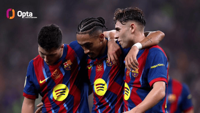 据统计,自至少2010-11赛季以来,西班牙超级杯上首次出现同一场比赛中有三名不同球员各自参与了3粒进球:费尔明-洛佩斯(1球2助攻)、拉菲尼亚(2球1助攻)以及巴尔德吉(1球2助攻)。