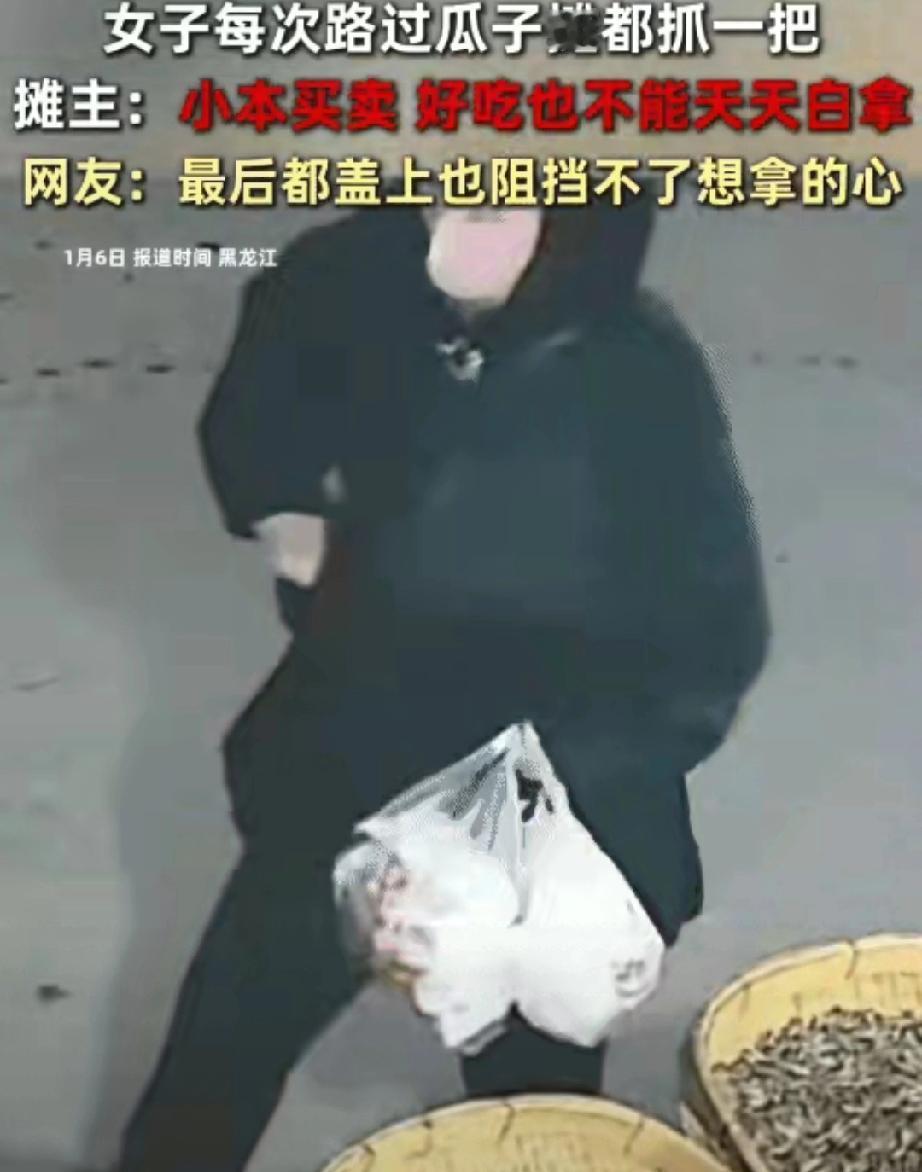 黑龙江,一女子每次路过小区门口的瓜子摊,都会顺手抓一大把,摊主老王本来不在意,但