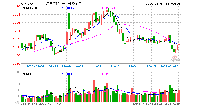 1月7日,绿电ETF(562550)涨0.36%,成交额1803.75万元。当日份额增加300.00万份,最新份额为2.67亿份,近20个交易日份额增加2400.00万份。最新资产净值计算值为2.96亿元。