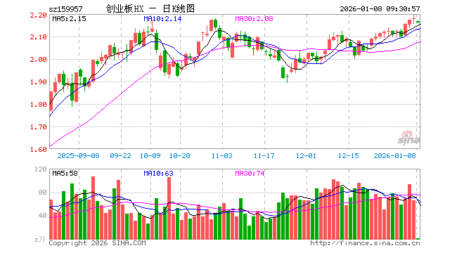 1月8日,创业板ETF华夏(159957)开盘跌0.64%,报2.167元。创业板ETF华夏(159957)重仓股方面,宁德时代开盘跌0.81%,中际旭创跌1.37%,东方财富跌0.98%,新易盛跌1.16%,阳光电源跌0.84%,胜宏科技跌0.07%,汇川技术涨0.47%,迈瑞医疗涨0.19%,亿纬锂能跌0.99%,温氏股份涨0.00%。