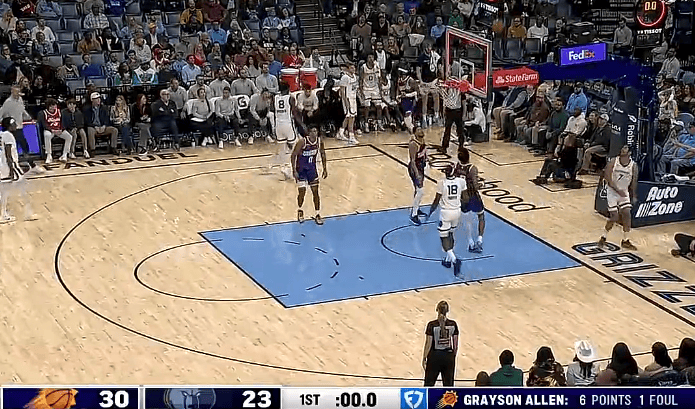比赛首节太阳30-23领先灰熊,小贾伦-杰克逊得到11分