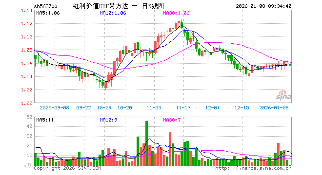 1月8日,红利价值ETF易方达(563700)开盘跌0.19%,报1.059元。红利价值ETF易方达(563700)重仓股方面,中远海控开盘跌0.07%,潞安环能涨1.53%,中粮糖业跌0.24%,南钢股份涨0.57%,山西焦煤涨0.99%,兖矿能源涨0.71%,成都银行涨0.00%,南京银行涨0.36%,大秦铁路跌0.20%,兴业银行跌0.19%。