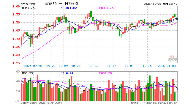 1月8日,深证50ETF富国(159350)开盘跌0.13%,报1.528元。深证50ETF富国(159350)重仓股方面,宁德时代开盘跌0.81%,美的集团涨0.00%,中际旭创跌1.37%,东方财富跌0.98%,新易盛跌1.16%,立讯精密跌0.92%,比亚迪跌0.41%,阳光电源跌0.84%,五粮液跌0.13%,北方华创涨0.00%。
