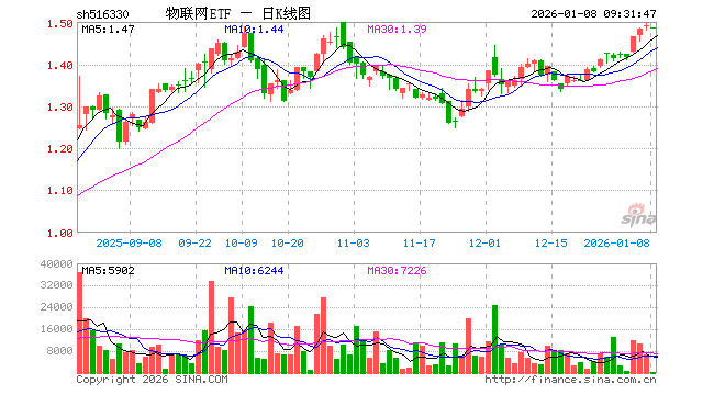 1月8日,物联网ETF(516330)开盘跌0.40%,报1.485元。物联网ETF(516330)重仓股方面,中际旭创开盘跌1.37%,立讯精密跌0.92%,汇川技术涨0.47%,中兴通讯跌0.57%,兆易创新跌1.33%,豪威集团跌0.48%,海康威视跌0.20%,科大讯飞涨1.34%,美的集团涨0.00%,华工科技涨0.96%。
