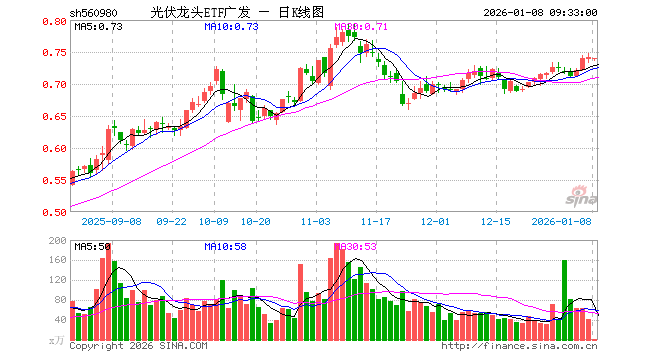 1月8日,光伏龙头ETF广发(560980)开盘跌0.40%,报0.739元。光伏龙头ETF广发(560980)重仓股方面,阳光电源开盘跌0.84%,特变电工涨0.37%,TCL科技涨0.00%,正泰电器涨0.92%,晶盛机电涨0.18%,德业股份涨0.00%,捷佳伟创跌0.63%,科华数据跌0.11%,锦浪科技跌0.51%,阿特斯跌1.76%。