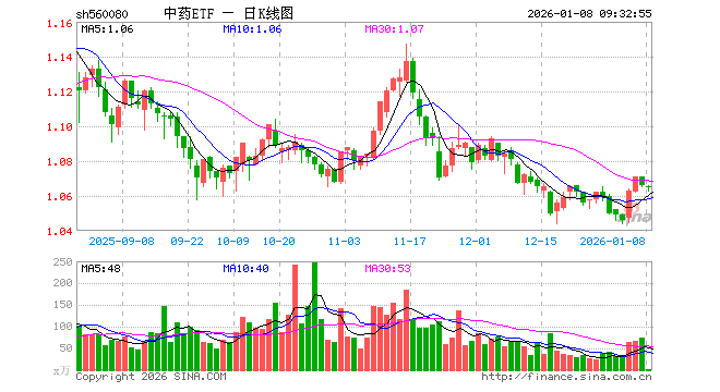 1月8日,中药ETF(560080)开盘跌0.09%,报1.065元。中药ETF(560080)重仓股方面,云南白药开盘跌0.07%,片仔癀涨0.01%,同仁堂跌0.28%,东阿阿胶涨0.08%,吉林敖东跌0.29%,华润三九跌0.28%,白云山涨0.12%,以岭药业涨0.34%,佐力药业跌0.12%,达仁堂跌0.19%。