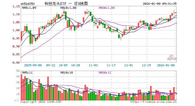 1月8日,科技龙头ETF(516050)开盘涨0.00%,报1.109元。科技龙头ETF(516050)重仓股方面,新易盛开盘跌1.16%,中际旭创跌1.37%,恒瑞医药涨1.80%,药明康德涨0.79%,中芯国际跌0.79%,海光信息涨1.46%,北方华创涨0.00%,澜起科技跌0.88%,中科曙光涨0.40%,胜宏科技跌0.07%。