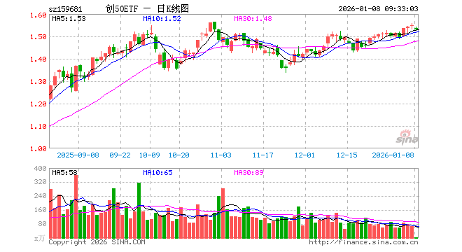 1月8日,创50ETF(159681)开盘跌0.78%,报1.535元。创50ETF(159681)重仓股方面,宁德时代开盘跌0.81%,中际旭创跌1.37%,东方财富跌0.98%,新易盛跌1.16%,阳光电源跌0.84%,胜宏科技跌0.07%,汇川技术涨0.47%,迈瑞医疗涨0.19%,亿纬锂能跌0.99%,同花顺跌2.01%。