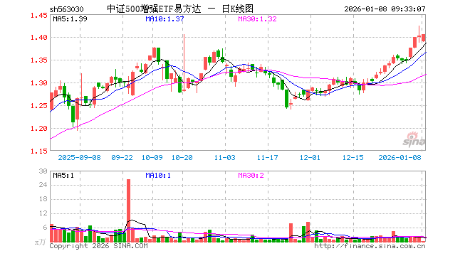 1月8日,中证500增强ETF易方达(563030)开盘跌0.93%,报1.390元。中证500增强ETF易方达(563030)重仓股方面,胜宏科技开盘跌0.07%,先导智能涨0.00%,巨人网络跌0.24%,瑞芯微涨0.23%,长川科技跌0.72%,赤峰黄金跌0.64%,科达利跌0.64%,深信服涨2.85%,九号公司涨0.02%,华工科技涨0.96%。