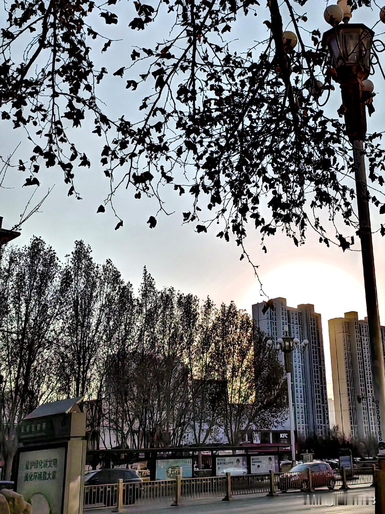 昨天下午5点多, 天空渐渐变的暗了。 太阳有升起又落下, 无意抬头看到了太阳夕