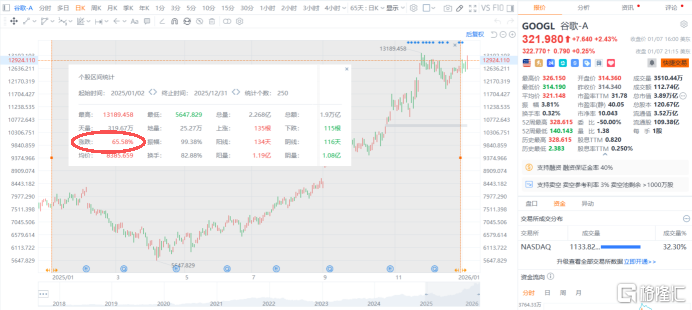回顾2025年,谷歌堪称华尔街表现最亮眼的科技巨头,股价全年飙升65%,创下自2009年金融危机后市场回暖以来的最大年度涨幅。