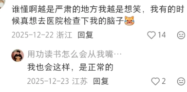 谁懂啊越是严肃的地方我越是想笑,我有的时候真想去医院检查下我的脑子。