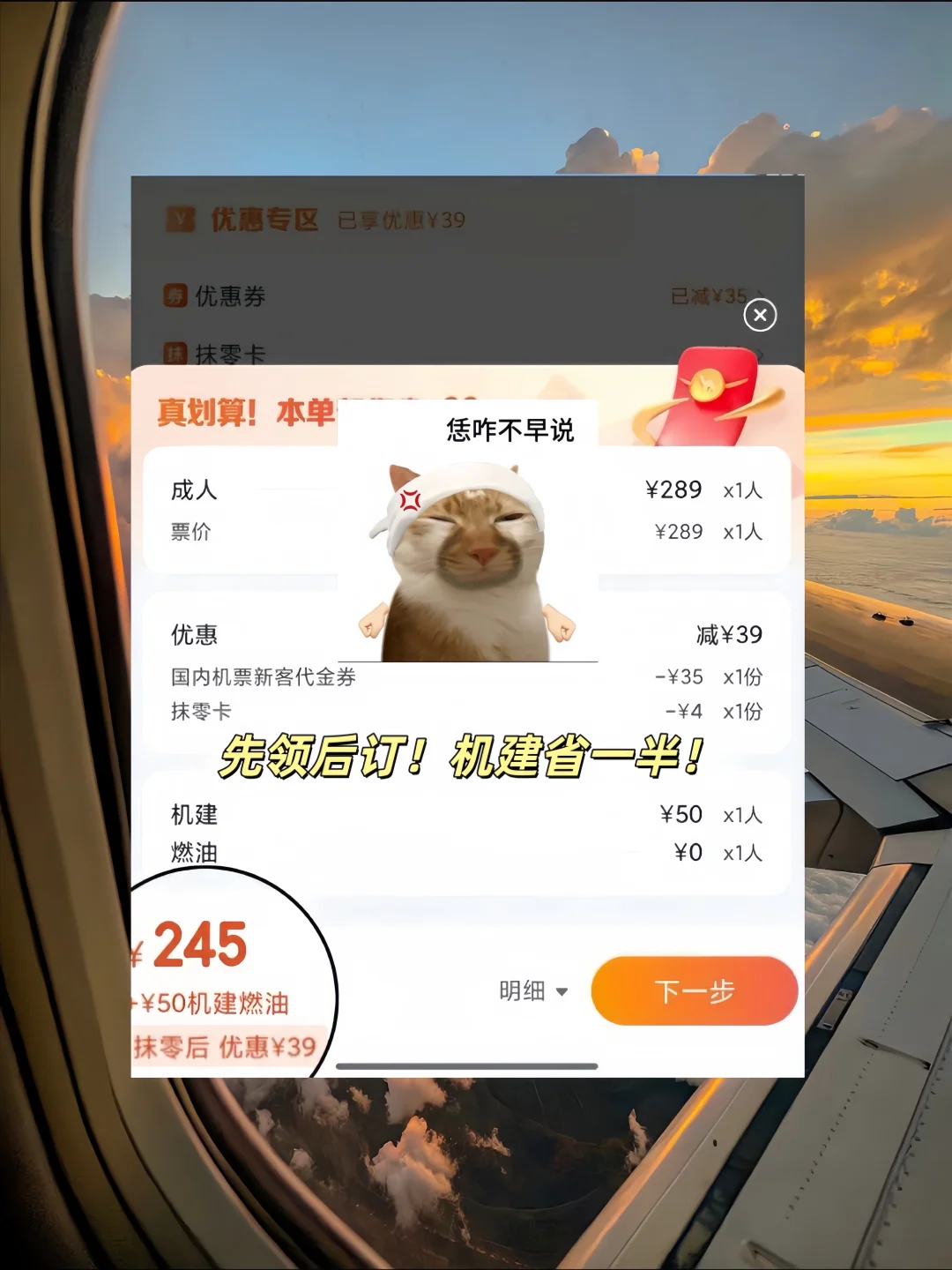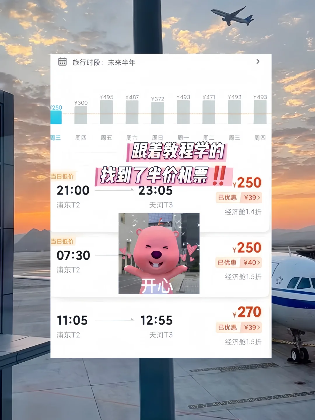 1️⃣ 去评论区发类似“机票太贵不去了”的言论 😂(让大数据知道 反复评查看有效!)