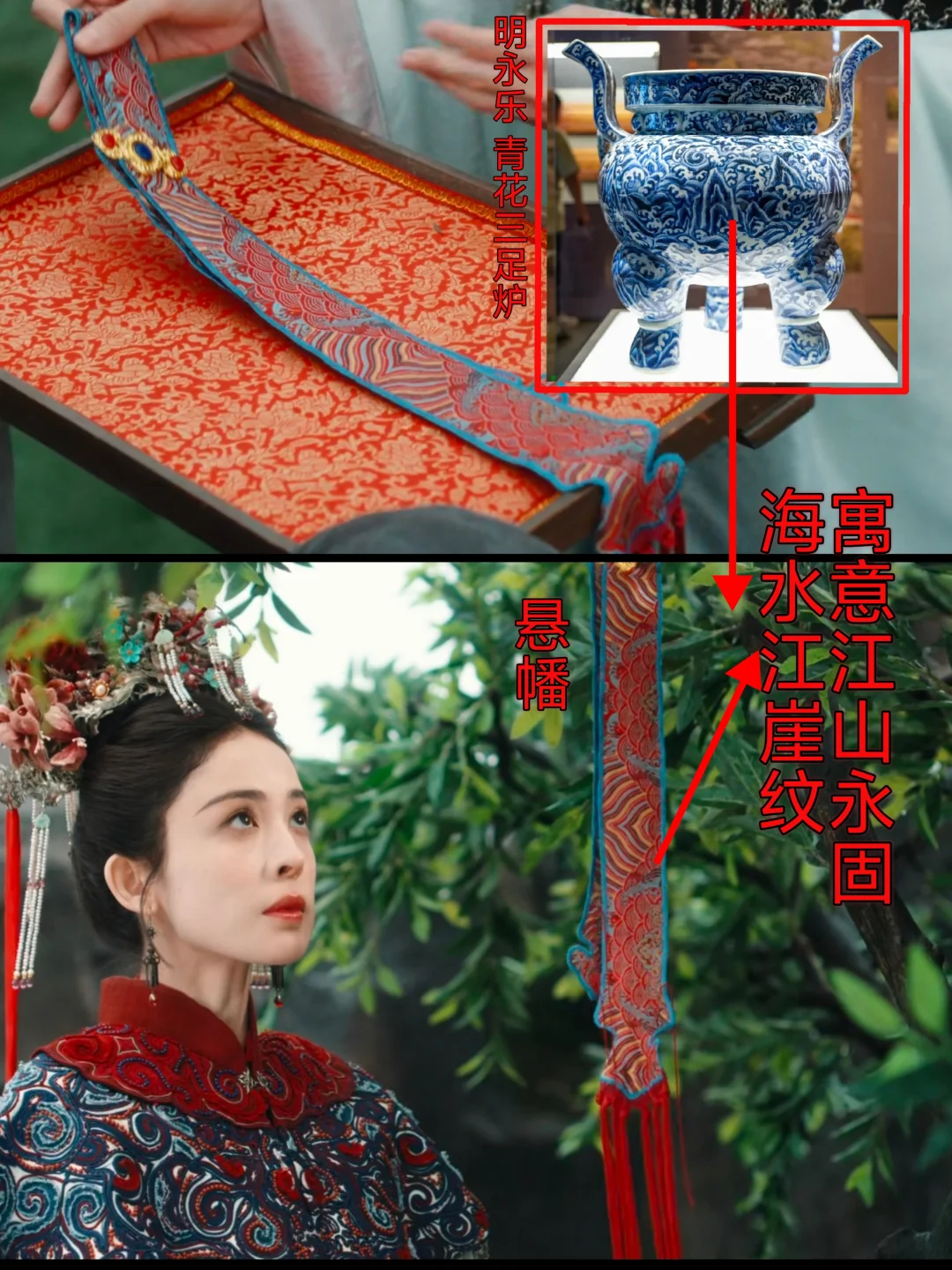❗❗荣善宝挂在茶树上的根本不是普通布带,是绣着海水江崖纹的幡!