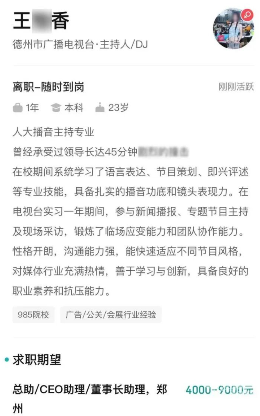 2025年7月,一则“前电视台女主持人求职信息”的相关群聊聊天记录,在网上引发传播,引发关注。