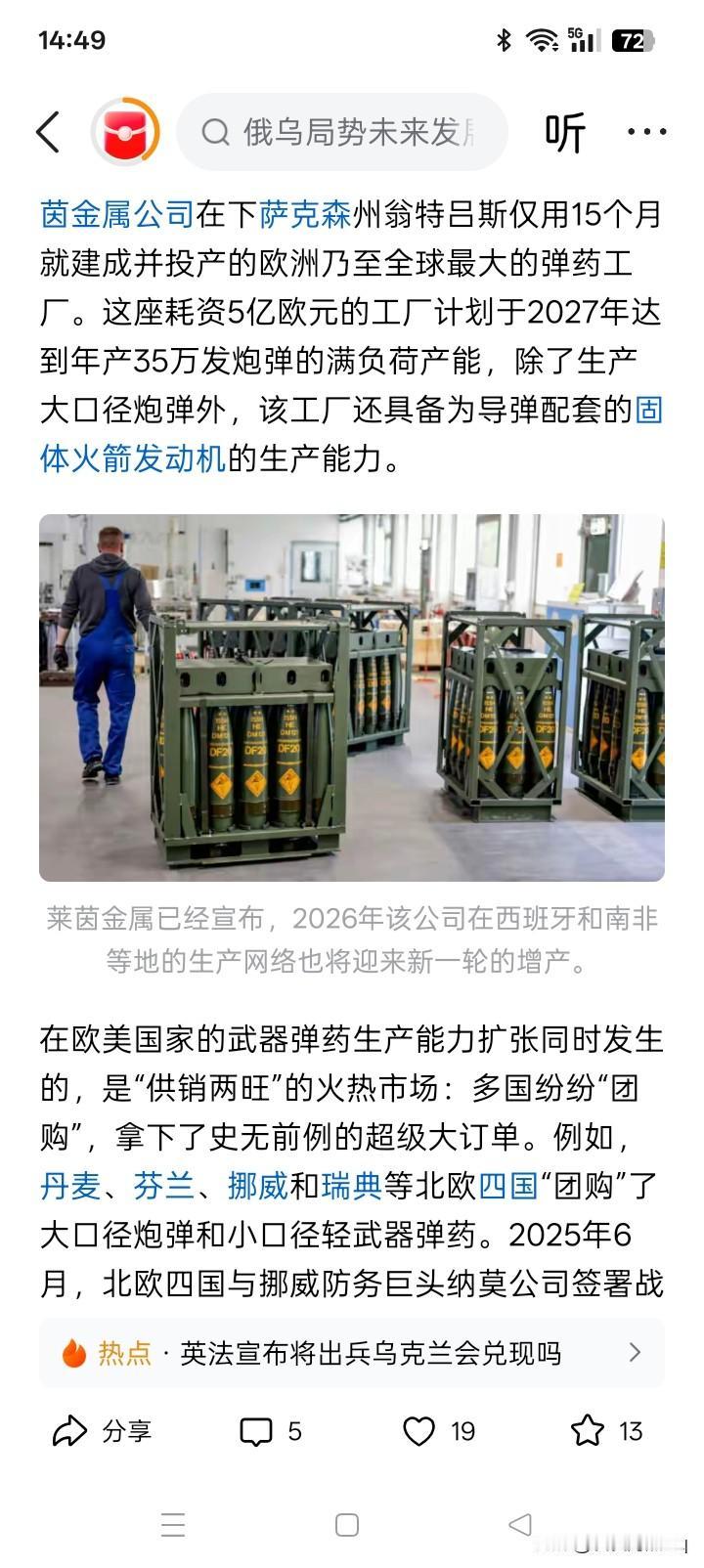空前严峻! 本来以为是一场小小的局部军事冲突——对乌克兰的特别军事行动,但是,大概没有多少人会预想到会演变成一场旷日持久、即将四年、目前还没有任何结束迹象的全面战争吧。 这场战争,不仅仅是牵涉到了整个欧洲的军事力量和军工企业,而且牵动了全世界的军事、军工神经。 现在,美欧似乎都在增加军工炮弹、导弹以及新兴武器无人机的生产,这些扩大、增加生产的武器,并非都是运往乌克兰的战场上使用,而是用于提升他们各自的武装力量的装备和储存。 当全世界经济和科技最发达、最先进的国家都坐在大批储备武器的军火库上的时候,带来的不确定性、甚至是威胁性,估计是不言而喻的。另外,尤其是对那些有领土争端或内部矛盾严重的国家,其存在的严重潜在威胁也是可想而知。 估计说这场战争,就是一场彻头彻尾,地地道道的罪恶,似乎毫不为过。