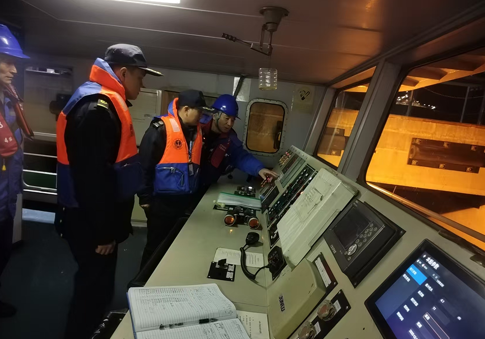围绕危险品船舶运输高风险特性,执法人员乘艇来到中石化码头登上作业船“腾丰*”轮,严格遵照《油船在港作业安全要求》(GB18434-2022)格式和内容开展船岸安全检查,将安全防线前置到作业前环节,重点检查船舶消防设施、电路和用电设施以及相关防护设备和器材,积极宣传冬季防火防爆防静电等安全知识,提高危险品船船员的安全意识。
