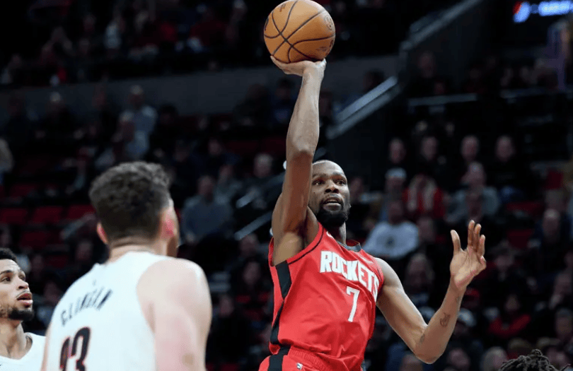 本场比赛,火箭球员凯文-杜兰特出战37分钟,26投14中,其中三分球6投2中,罚球9投7中,空砍37分4篮板1封盖。