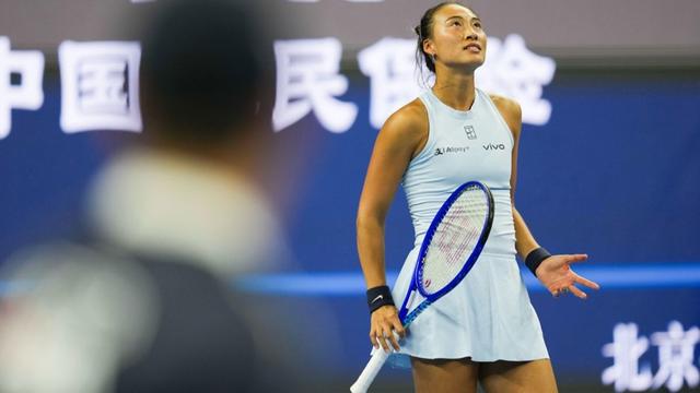 新华社照片,北京,2025年9月29日9月29日,郑钦文在比赛中。当日,在北京举行的2025中国网球公开赛女单第三轮比赛中,中国选手郑钦文对阵捷克选手诺斯科娃。比赛进行至第三盘时,郑钦文因伤退赛,诺斯科娃晋级下一轮。新华社记者那宇奇摄