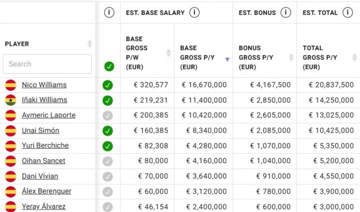 去年夏窗,尼科一度接近加盟巴萨,但最终选择了与毕巴续约。毕巴为他提供了一份超高薪水的10年长约合同,他的基础年薪1667万欧,算上奖金最高可超2000万欧,是毕巴队内的顶薪。