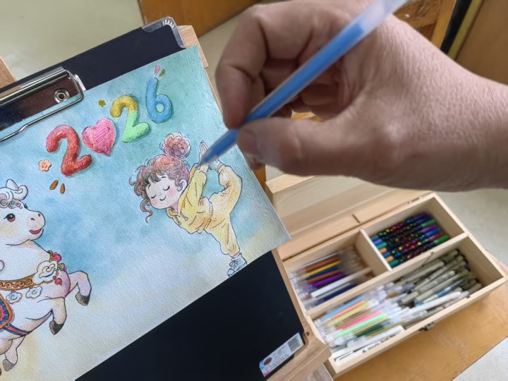 “把时光沉淀成色彩,把对2026的期许画成腾飞小马的感觉,太治愈了。”他兴奋地分享道。