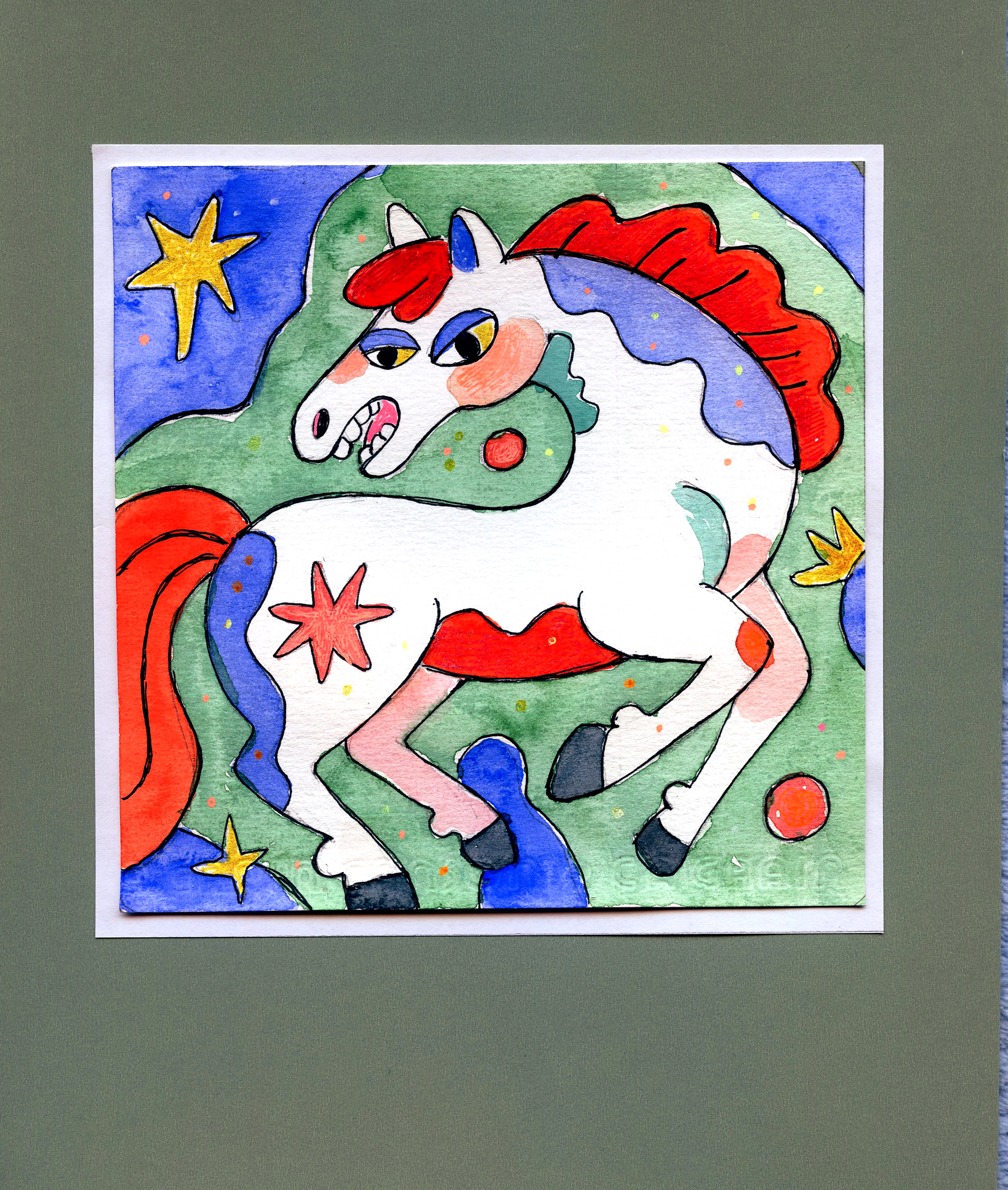 2025年底,他开始构思一系列以马为主题的手绘作品。“马年系列作品的想法和创意历程有点难度。”他坦言,“要在绘画过程中多一些思考,多一些突破。”