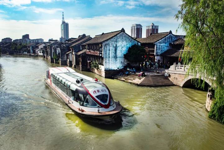 2024年10月20日,月河景区河上陆游船划过李剑铭摄