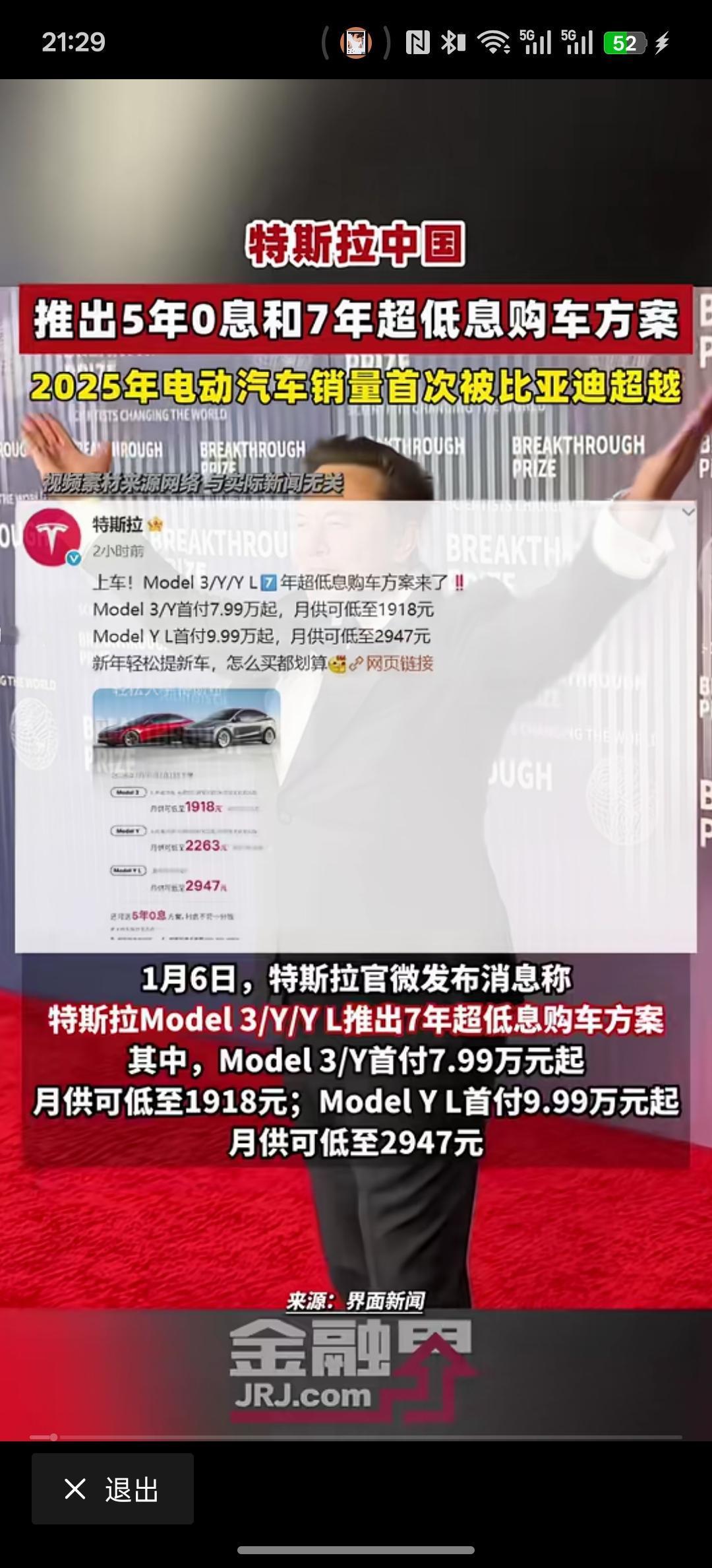 特斯拉中国又放出了王炸,推出了5年0利率还有七年超低利息的购车方案! 2025年特斯拉的销量首次被中国比亚迪所超越,这一次,特斯拉直接就干出了这样的政策,那未来对于购买特斯拉的消费者可能会增加!毕竟推出了五年0利率的购车方案,这个是有很强的推动消费作用!买车五年不用换利率!很多人肯定会愿意买! 那国内的厂商估计也会跟着这么干