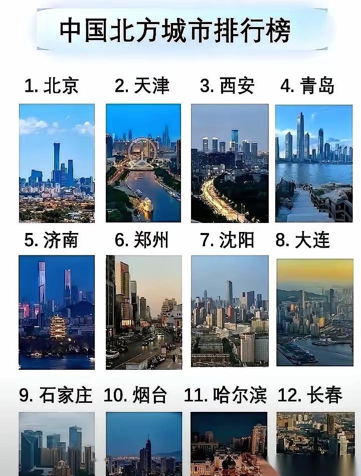 北方 城市 没有烟台,有徐州,有人编排中国北方城市的综合实力排名分第一档,北京 天津,两个直辖市,没毛病。 第二档青岛 济南 西安 沈阳 大连 郑州 都是省会或计划单列市,副部级城市城市,也牛皮。 第三档长春 哈尔滨 唐山 石家庄 徐州。高看徐州、唐山了,万亿之城烟台,号称北方第一地级市要属于第四档吗,与太原、保定、临沂、洛阳等一个等级吗?烟台肯定不服气,老徐有地铁,唐山没地铁为啥能上去。 烟台
