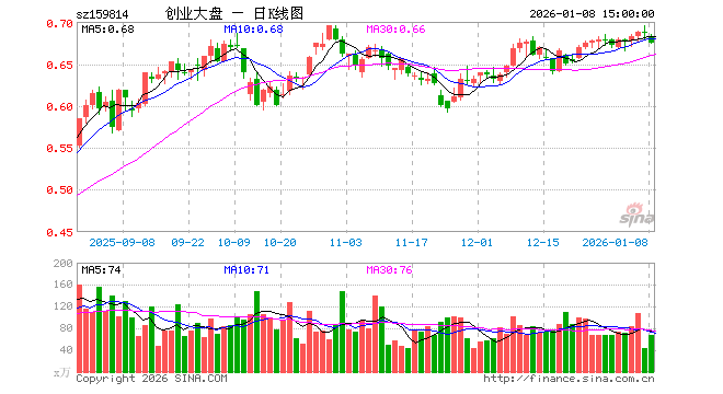 1月8日,创业大盘ETF(159814)跌1.60%,成交额4654.25万元。当日份额减少400.00万份,最新份额为7.30亿份,近20个交易日份额减少1.08亿份。最新资产净值计算值为4.94亿元。