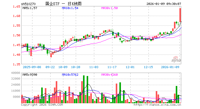 国企ETF(510270)开盘涨0.77%,重仓股贵州茅台涨0.33%,紫金矿业跌0.83%